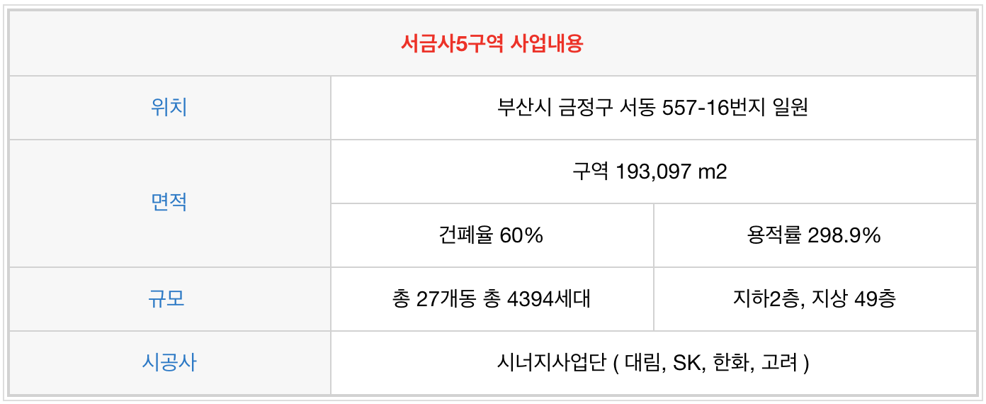 이에, 최대규모의 서금사5구역 재개발에 다시 기대를 하게 됩니다.