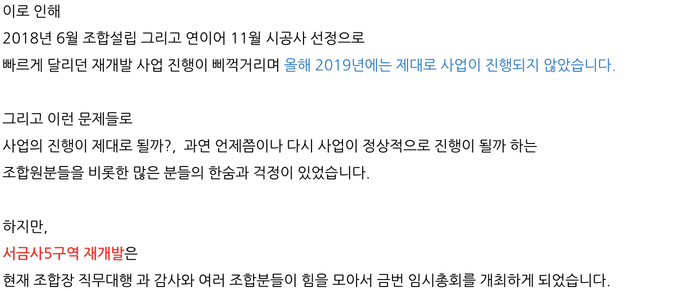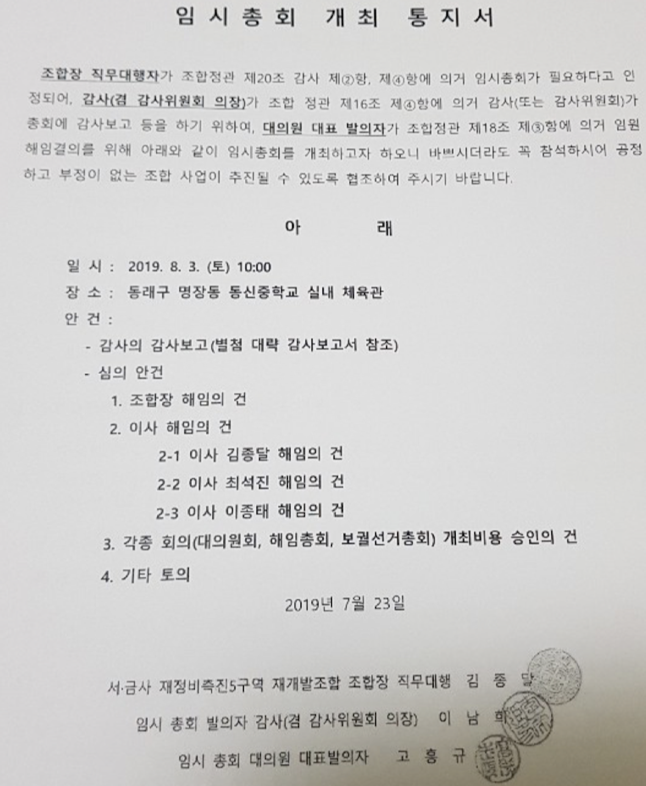 서금사5구역 조합원 분들의 관심과 빠른 대처로 임시총회가 잘 치뤄지고