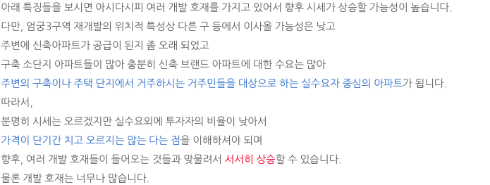 향후적으로 어떤 호재들을 가지고 현재의 주변 시세가 변경할 수 있을가를 보셔야 됩니다.