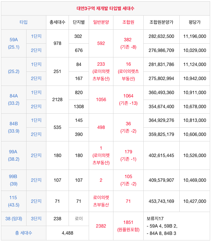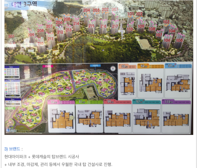 대연3구역 재개발 115등 타입별 입주권 소개