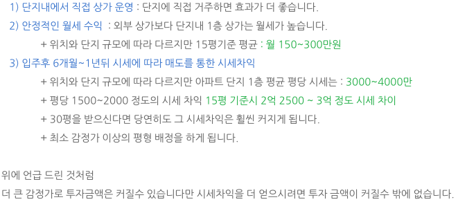 실제 아파트 단지내 한정된 상가수로 인한 물량이 작고 분양 신청시부터 이후 시세 차이까지 고려하셔서