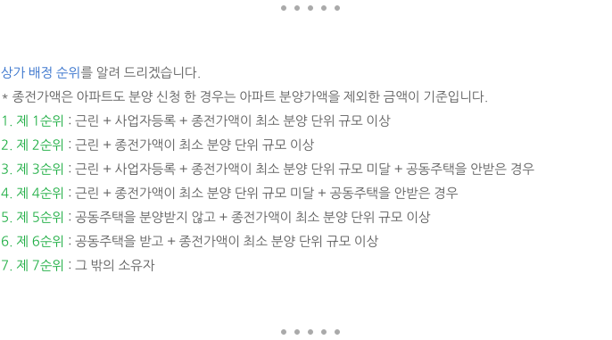 위 순위에서 5순위 이상은 상가를 배정 받는 것이 사실상 힘들기 때문에 생각지 않으시면 되기에