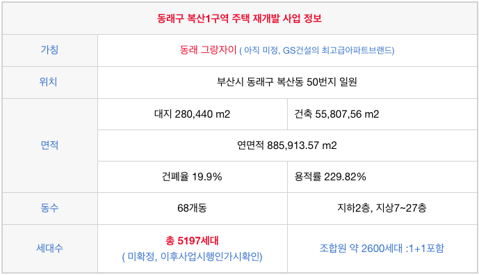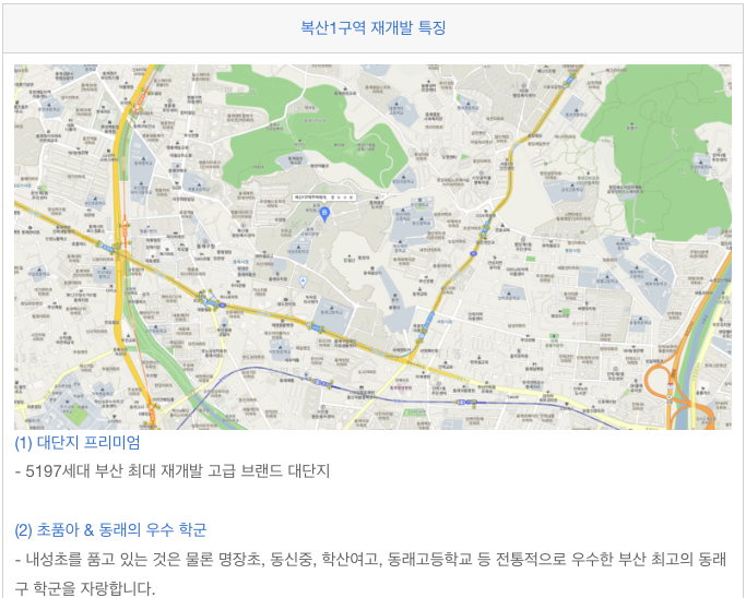복산1구역 재개발의 특징을 간략히 살펴 보겠습니다.