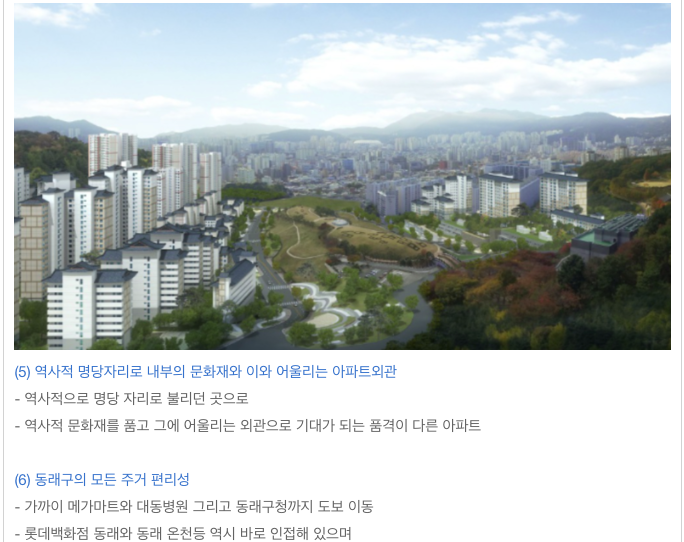 동래구라는 그 위치적인 장점과 단지의 규모로 인해 많은 분들이 관심을 가지고 있는 구역입니다.
