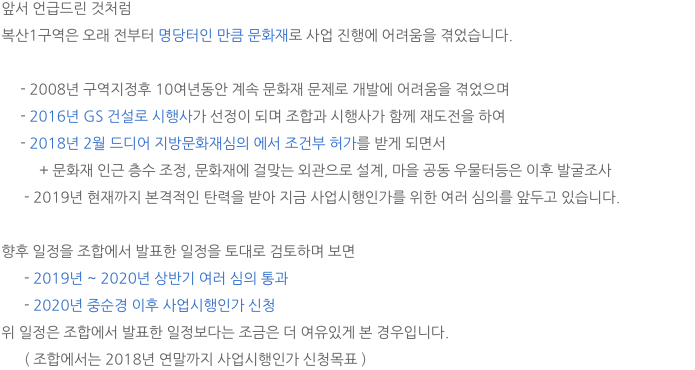복산1구역 재개발의 그간 진행과정과 이후 진행과정을 한번 살펴 보도록 하겠습니다.