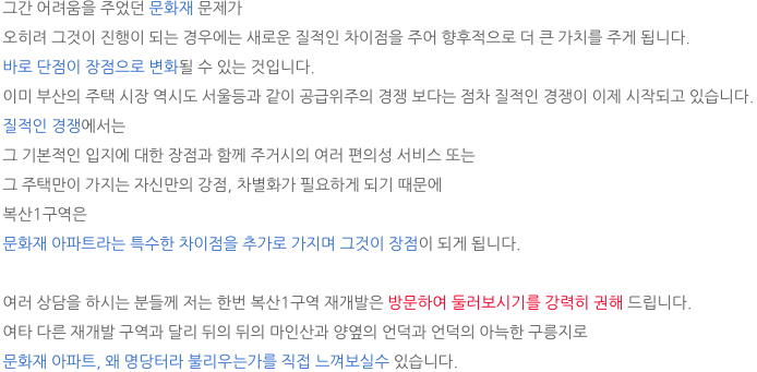 이런 질적인 차이를 가진 복산1구역 재개발은