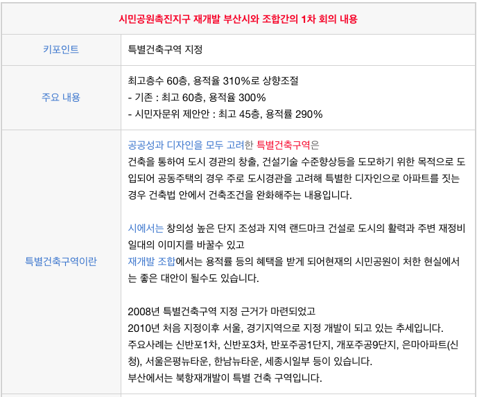 시민공원 촉진3구역의 특별 건축구역 관련 지난 회의 내용 입니다.
