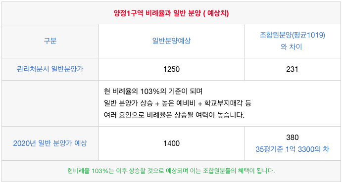 양정1구역 재개발의 각 평형별 세대수와 조합원 분양가를 소개해 드립니다.