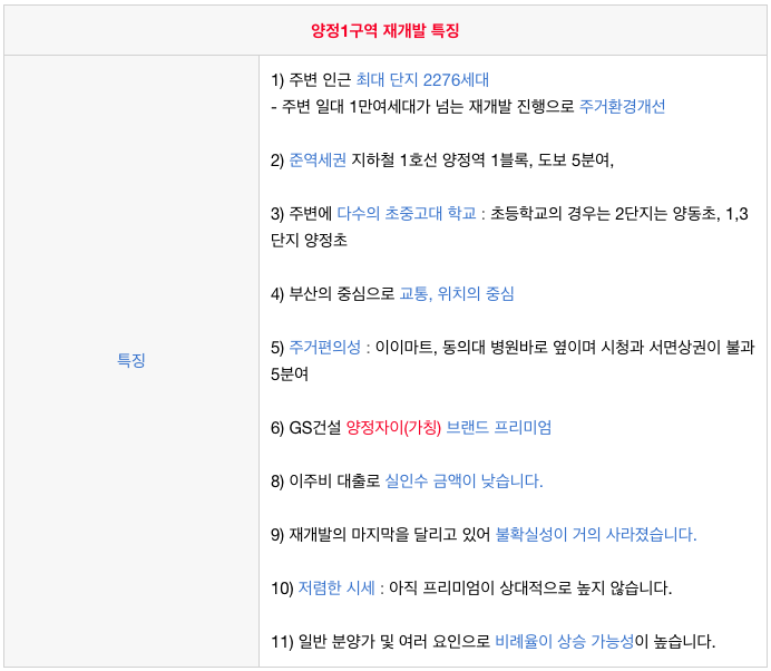 양정1구역 재개발의 특징을 간략히 소개해 드립니다.