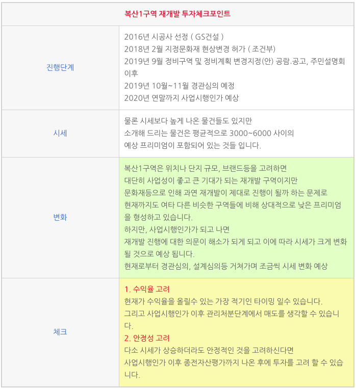 복산1구역 재개발의 최근소식과 장점등 자세한 사항은