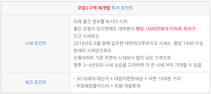 우암2구역 재개발 프리미엄 낮은 물건들 |