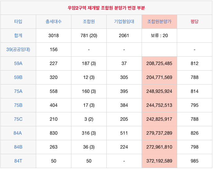 최근 조합원 임시 총회를 통해서 조합원 분양가가 평당 50만원 상승 하였습니다만