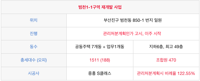 부산재개발 범천1-1구역 재개발 소식과 조합원입주권