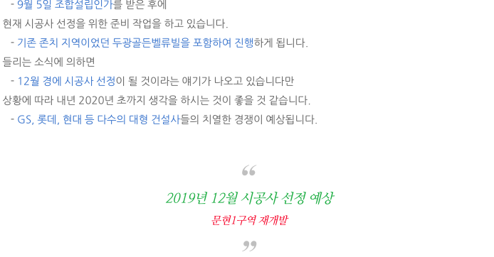 이후 부분에서는 조합에서는 빠르게 진행을 하고 있다고 하니 기대를 할 수 있을 것 같습니다.