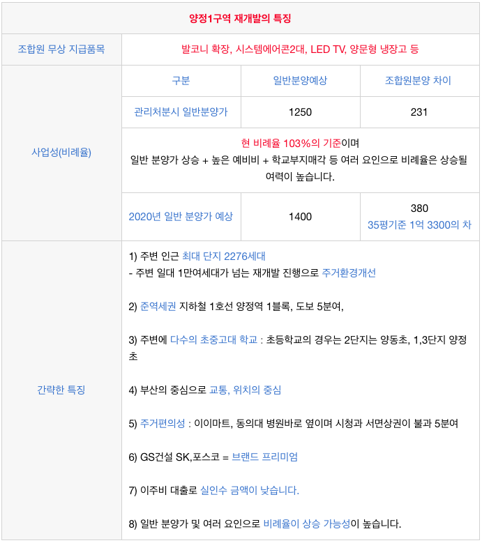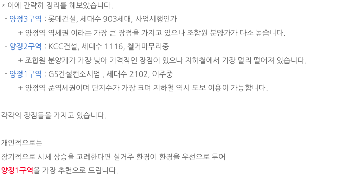 언제나 양정1구역, 양정2구역, 양정3구역 을 비교하시며 문의를 하십니다.