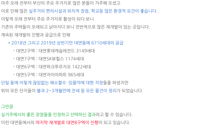대연8구역은 제가 개인적으로도 참 다양한 물건을 경험했었던 애착이 가는 구역이기도 합니다.