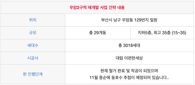 우암2구역 재개발의 간략한 특징을 정리했습니다.