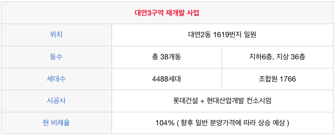 대연3구역 재개발 사업 개괄 입니다.