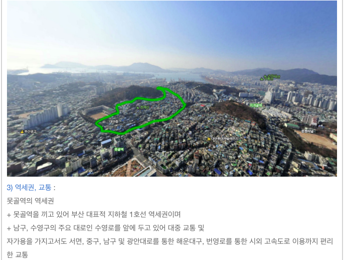 - 부산 지하철 1호선 역세권이며 대연동의 우수한 실거주 환경을 가지고 있습니다.