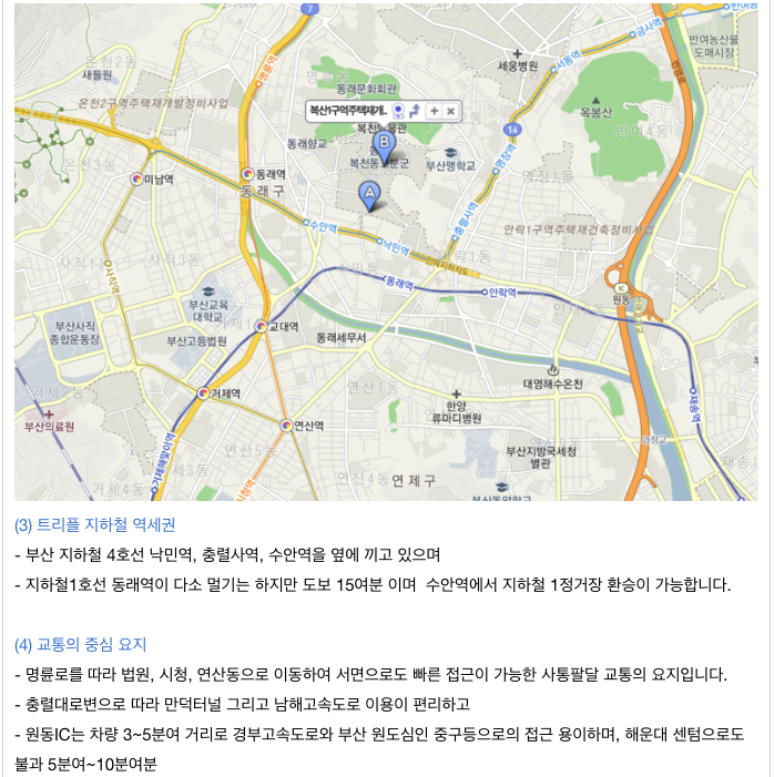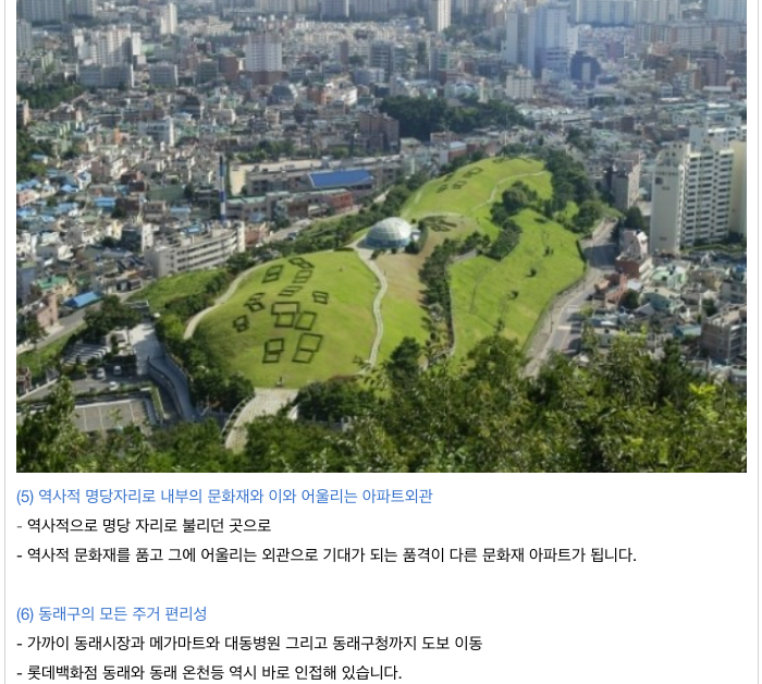 - 1) 동래구라는 실거주의 좋은 장점과 5000여세대가 넘는 대단지에 브랜드 아파트라는
