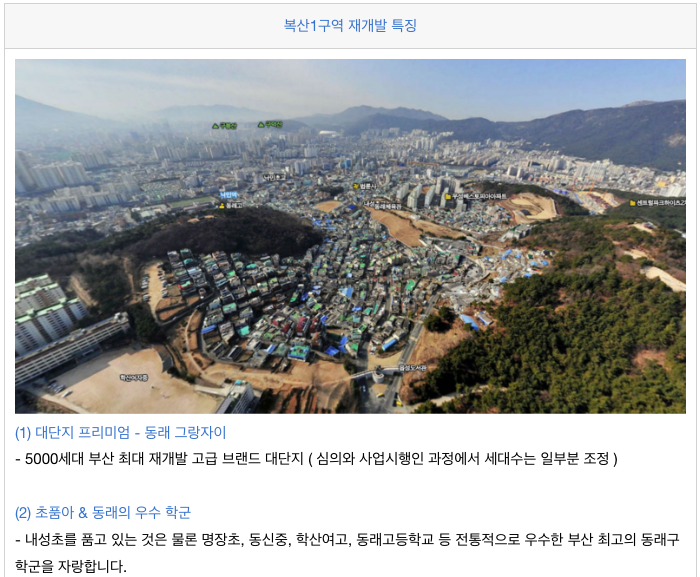 복산1구역 재개발의 특징을 한번 보시면 그 큰 장점을 이해하실수 있습니다.