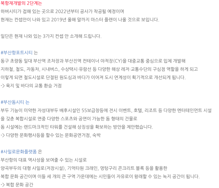 미래 가치와 변화를 아시기 위해서는 북항 재개발을 조금은 아셔야 합니다.