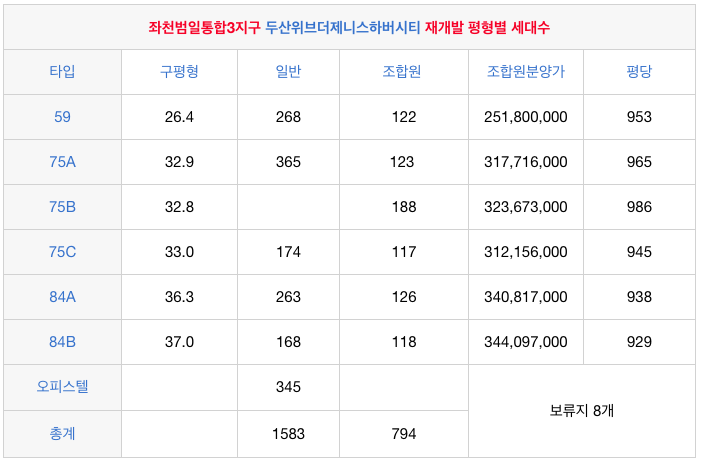 가장 앞동에 정남향으로 위치하고 있어서 인기가 가장 좋다 보니 조합원이 100% 가져간 물건입니다.