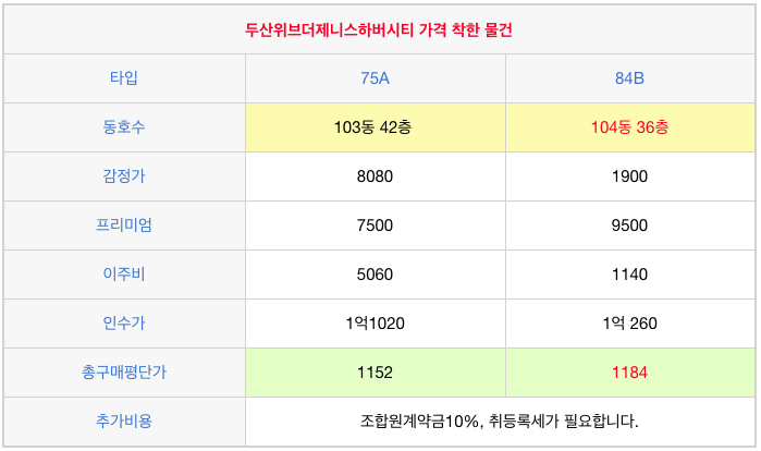 감정가를 통한 비례율 혜택이 있고 앞동 선호동 선호층입니다. |