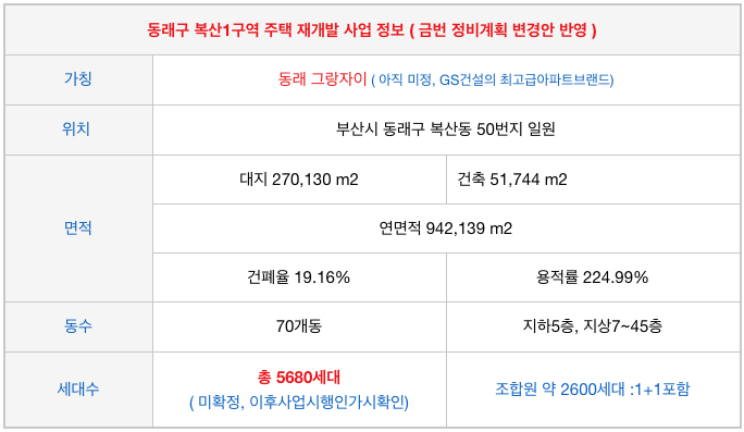 동래구의 복산1구역 재개발은 간략한 사업 내용은