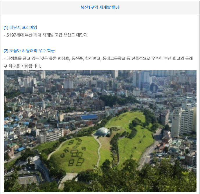 복산1구역 재개발의 특징을 간략히 살펴 보겠습니다.