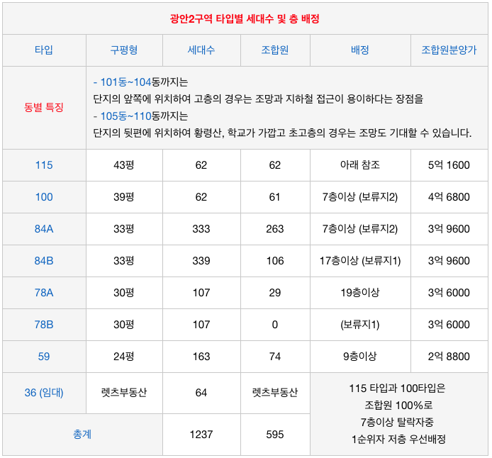 광안2구역 재개발 100타입 물건 안내 |