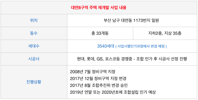 - 대연8구역은 2020년 3월에 구역 일몰제에 해당이 되기에