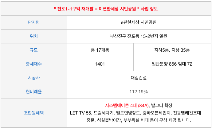 전포1-1구역 재개발 = 이편한세상 시민공원 조합원 입주권 |