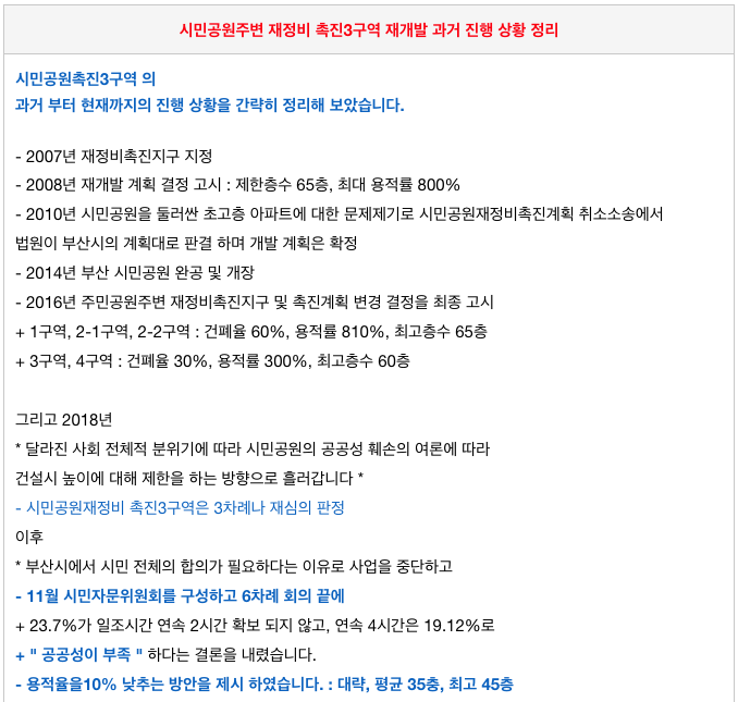 시민공원 촉진3구역 재개발의 그간 진행 전부 상황을 간략히 정리해 드립니다.