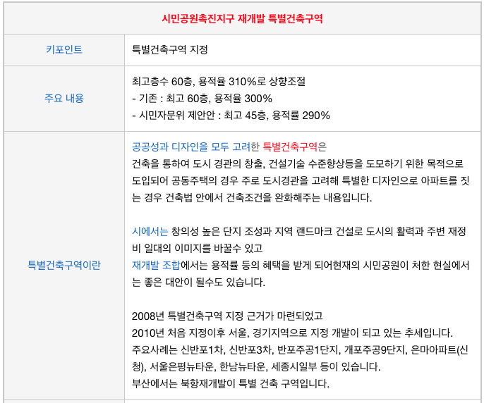 시민공원 촉진3구역의 특별 건축구역 관련 내용입니다.
