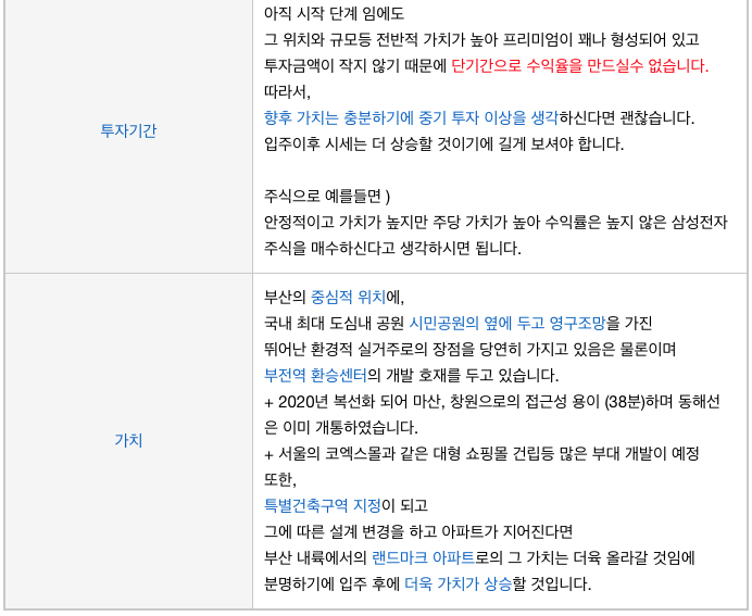 투자금액도 작지 않지만 미래가치가 높아서 아직 기간이 많이 남아 있지만 실거주까지 고려하시는 분들께서