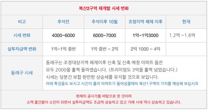 11월 조정대상지역 해제로 가격이 좀 상승하기는 하였지만 그래도 동래구 에서는 상대적으로 프리미엄이 낮은 곳입니다.