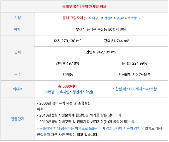 동래구 재개발 " 복산1구역 " 소식과 조합원 물건