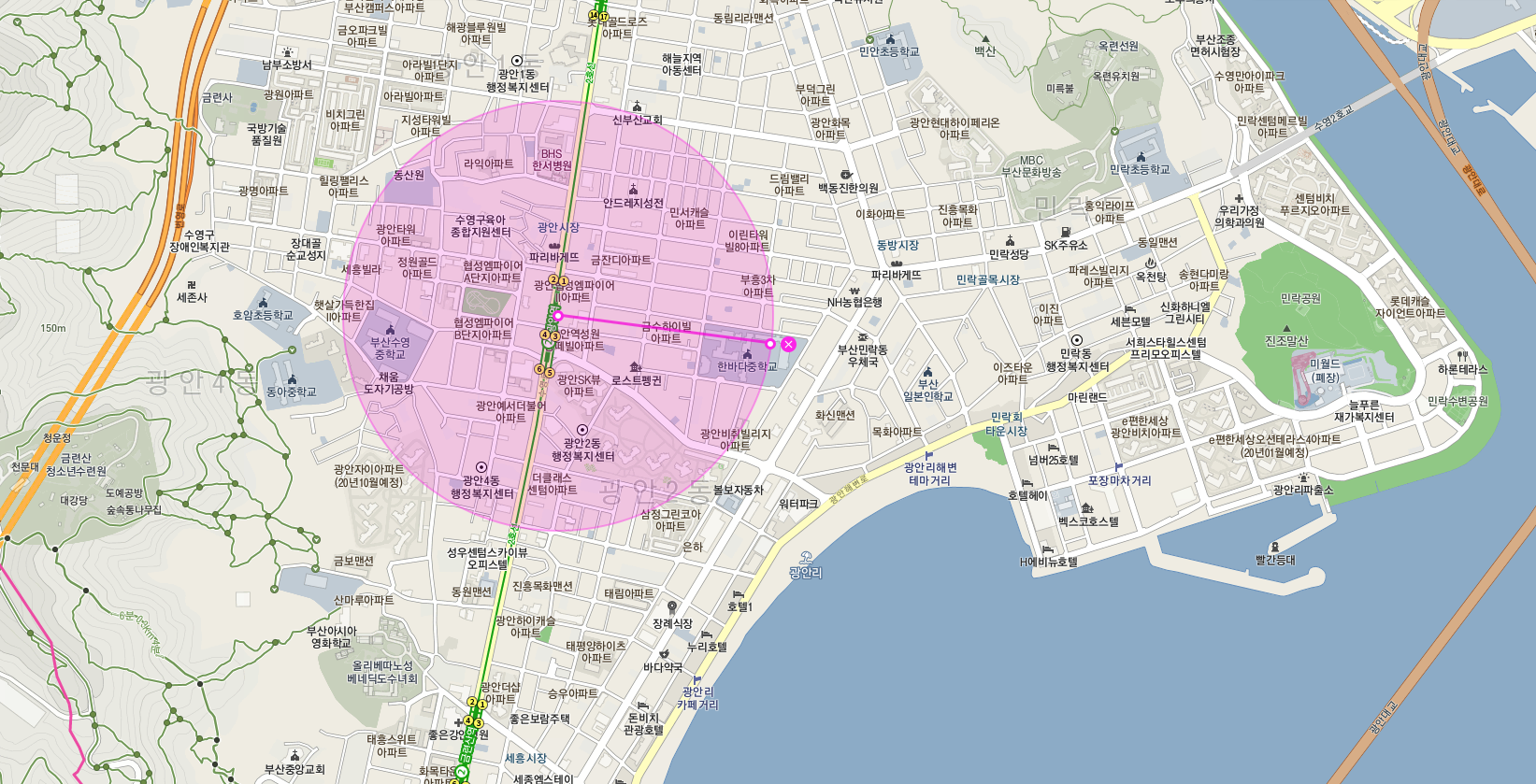 광안역 도보 5분 인근에 민안초, 광안초, 한바다중학교 위치 |