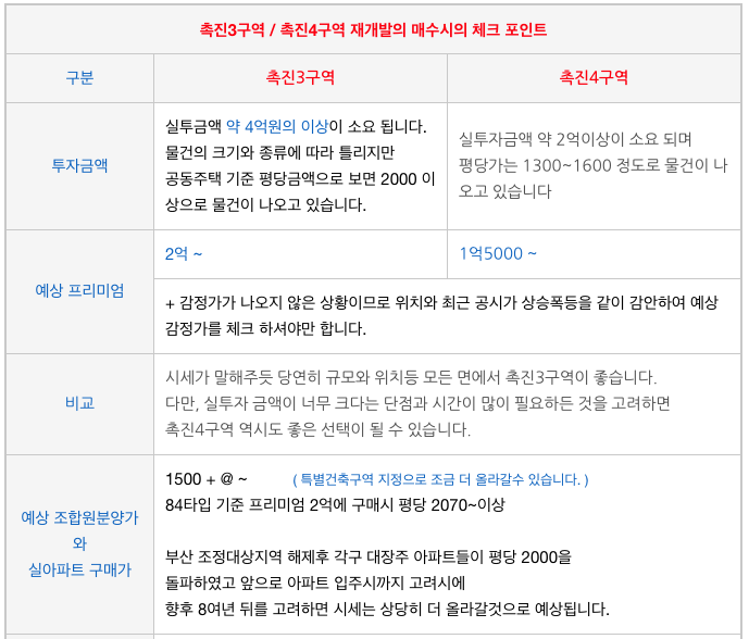 위의 물건 정보에서 보시다시피 촉진3구역에 비해 상대적으로 소액투자 입니다. |
