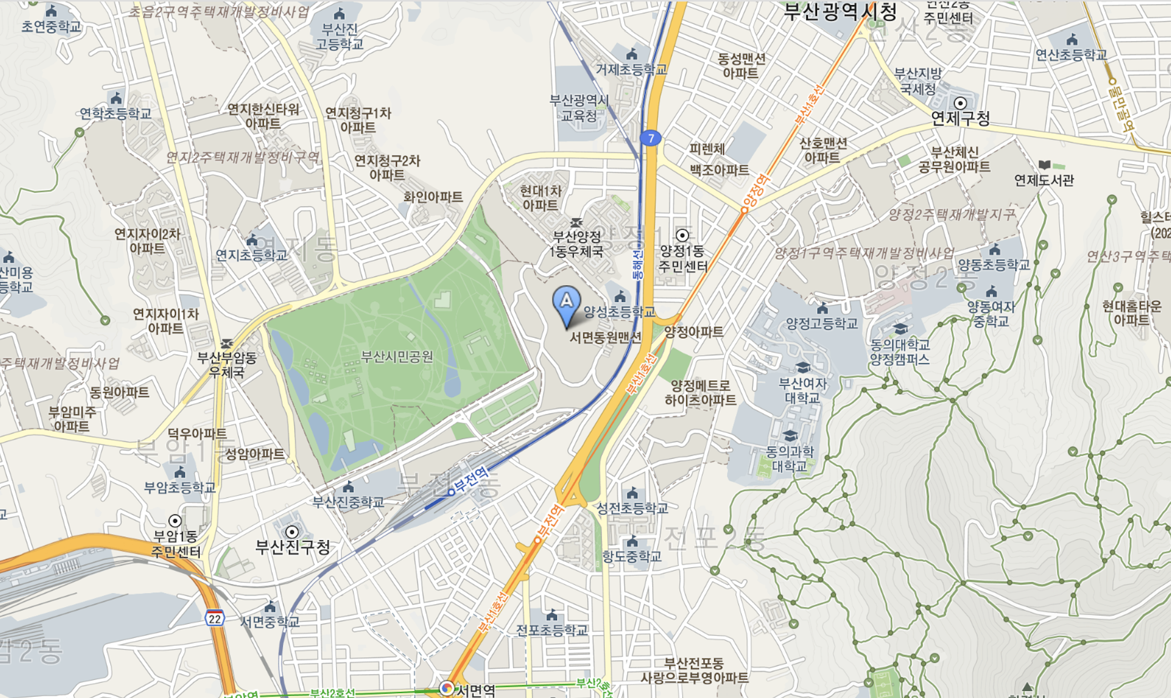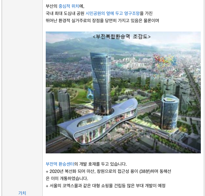 시민공원을 남서향으로 영구 조망을 기대할 수 있는 곳으로 부산의 재개발 대장중의 하나입니다.