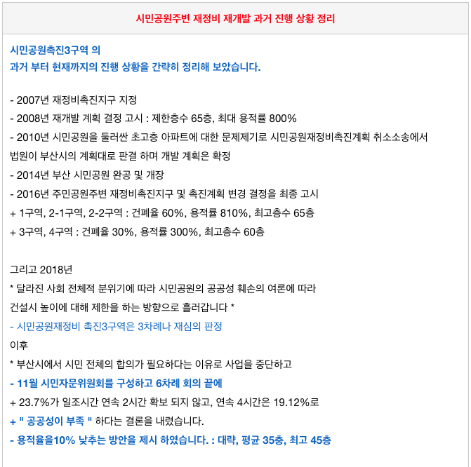 시민공원 촉진3구역 재개발의 그간 진행 전부 상황을 간략히 정리해 드립니다.