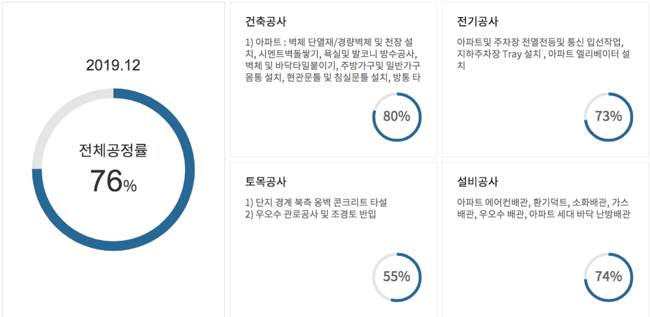 광안자이 아파트의 현재 2019년 12월 공사 공정률입니다.
