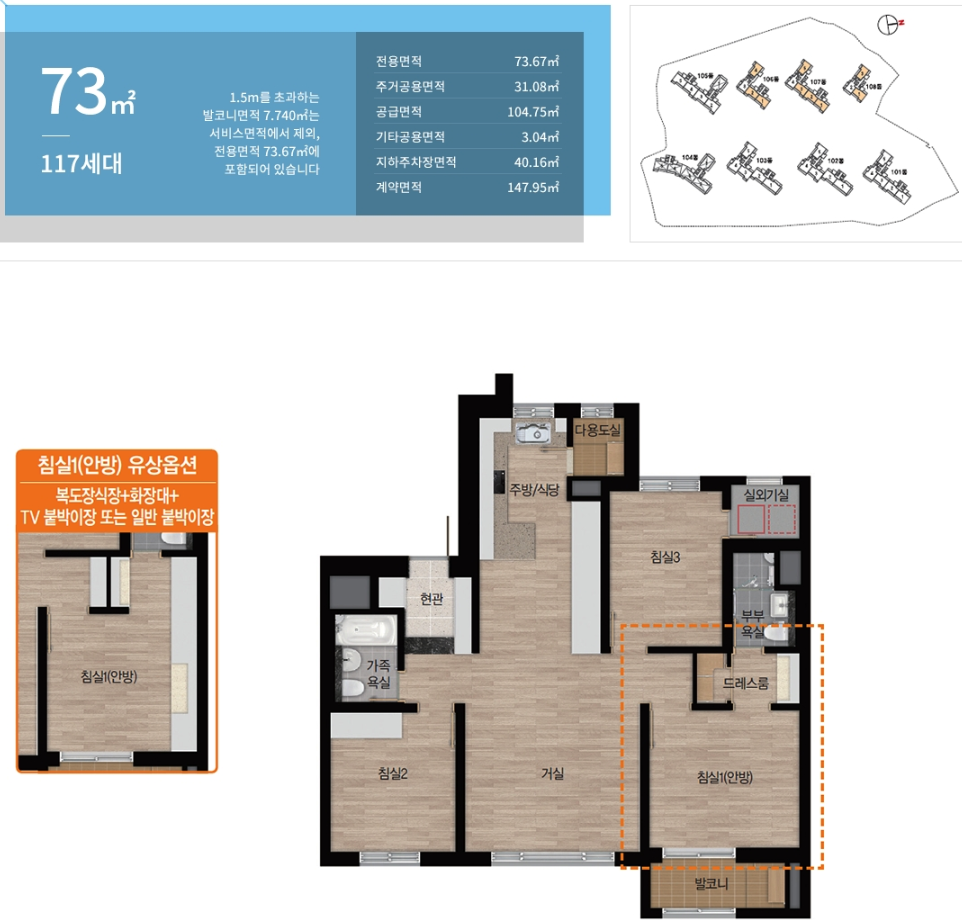 광안동 브랜드 아파트 " 광안자이 " 84 타입, 73타입