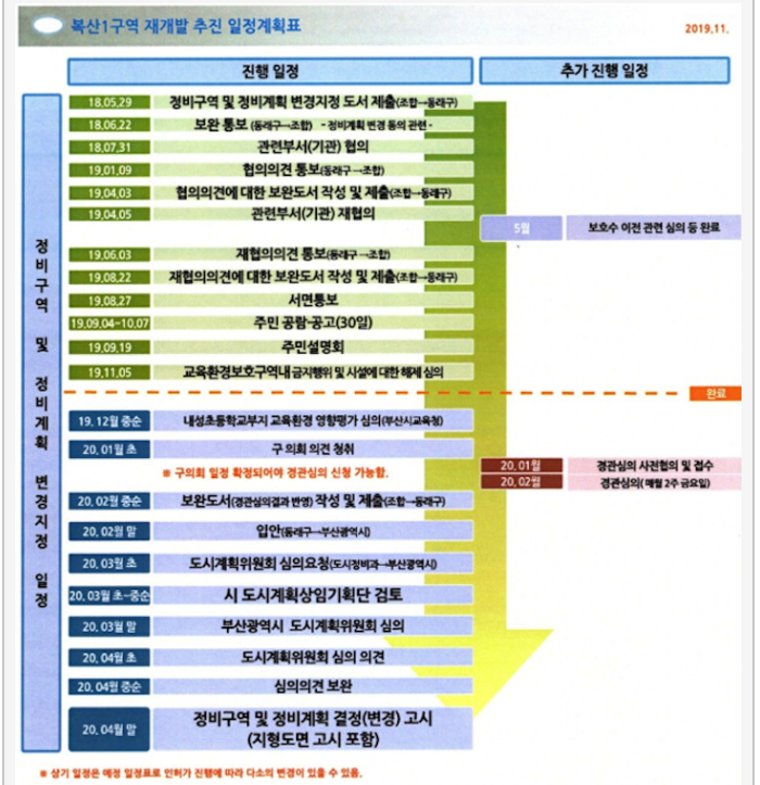 그래서, 다른 구역과 달리 이주 및 철거 후 발굴 조사 기간을 별도로 책정애 두고 있습니다.