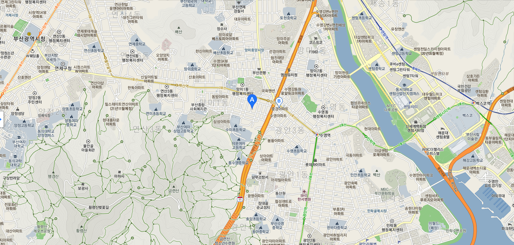연제구에서 수영구로 그리고 해운대구로 이어지는 첫 관문인 동네가 바로 망미동 입니다.