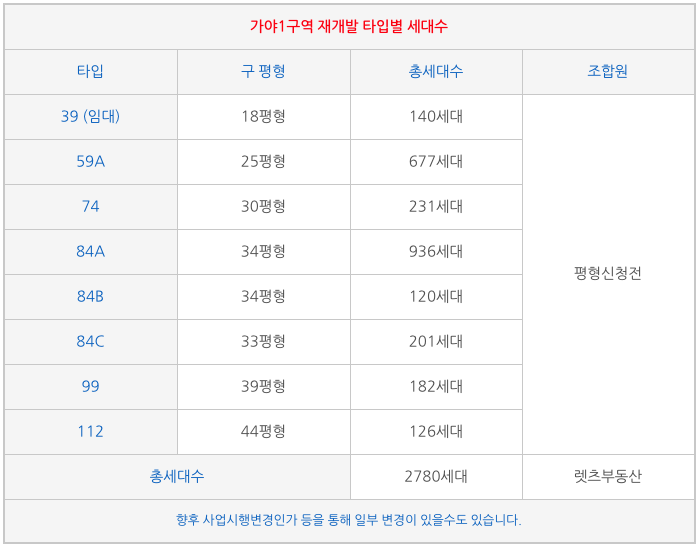 망미2구역 주택 재개발의 타입별 세대수 와 특징을 정리해 드립니다.