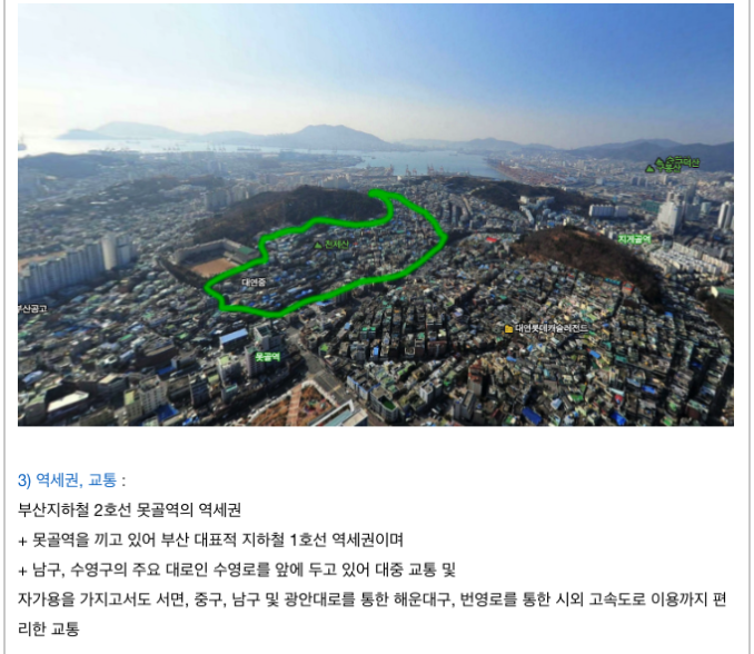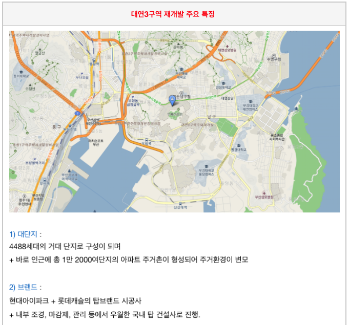 대연동의 재개발에서의 최대 단지를 가지고 있고 역세권이라는 장점을 가지고 있습니다.