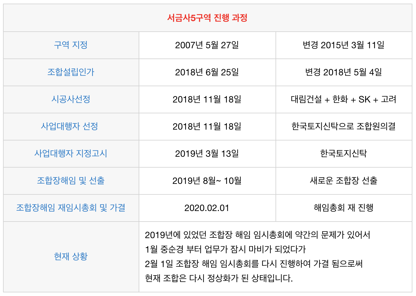2007년 구역 지정이후 별다른 움직임을 보이지 않다가 2018년도에 조합설립, 시공사 선정등 갑자기 속도를 내기 시작하였습니다.