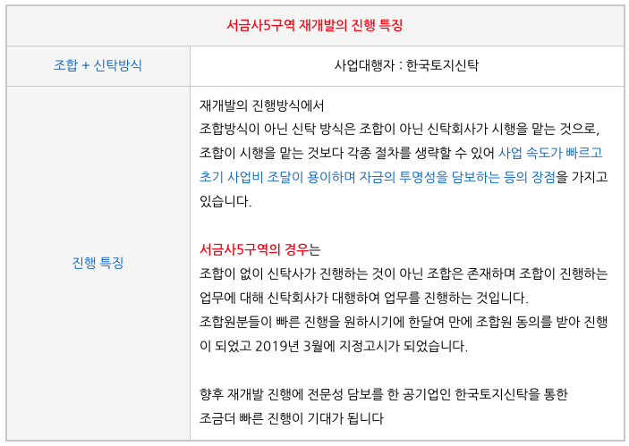 위의 진행과정에서 언급드렸던 것처럼 사업대행자로 한국토지신탁을 채택하여 진행하는 방식 입니다.